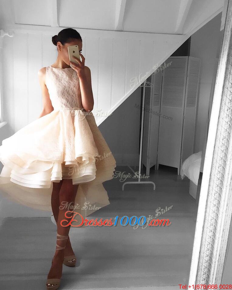 Scoop Sleeveless Backless Asymmetrical Lace Evening Gowns