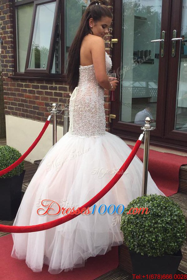 Mermaid White Halter Top Backless Beading and Ruching Pageant Dress for Girls Sleeveless