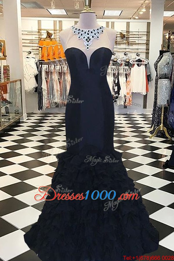 Discount Mermaid Scoop Sleeveless Sweep Train Side Zipper Beading High School Pageant Dress