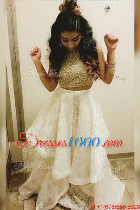 Fabulous Scoop Sleeveless Lace Pageant Dress for Womens Beading and Ruffles Sweep Train Zipper