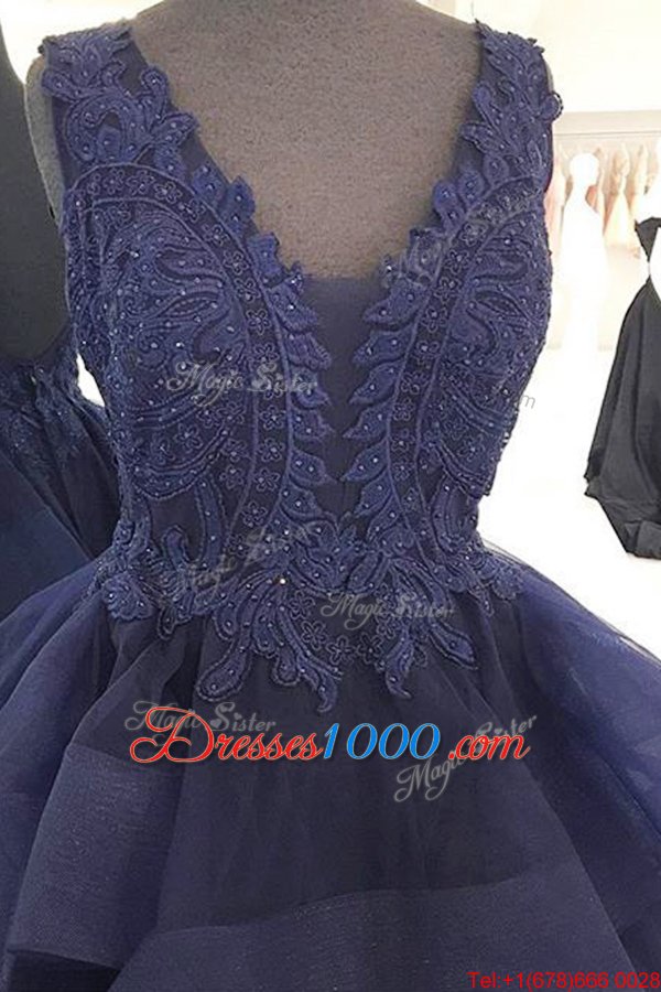 Floor Length A-line Sleeveless Navy Blue Pageant Dress for Teens Backless