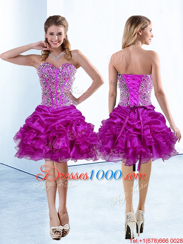Super Fuchsia Sleeveless Beading and Ruffles and Pick Ups Knee Length Pageant Dress Wholesale