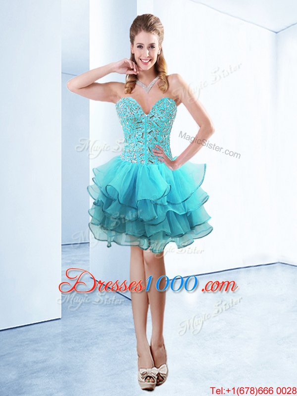 Aqua Blue Organza Lace Up Sweetheart Sleeveless Knee Length Pageant Dress for Teens Ruffles