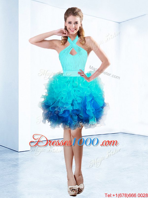 Exquisite Halter Top Sleeveless Organza Glitz Pageant Dress Ruffles and Ruching and Belt Zipper