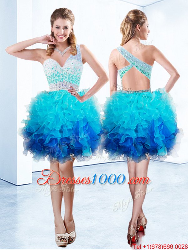 Pretty One Shoulder Sleeveless Beading and Ruffles Criss Cross Cocktail Dress
