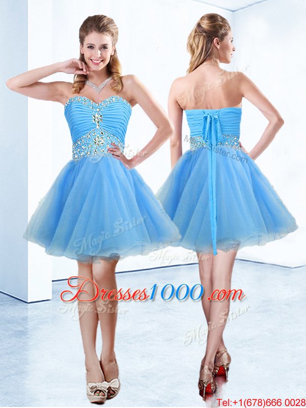 Spectacular Sweetheart Sleeveless Lace Up Pageant Dress for Womens Blue Organza