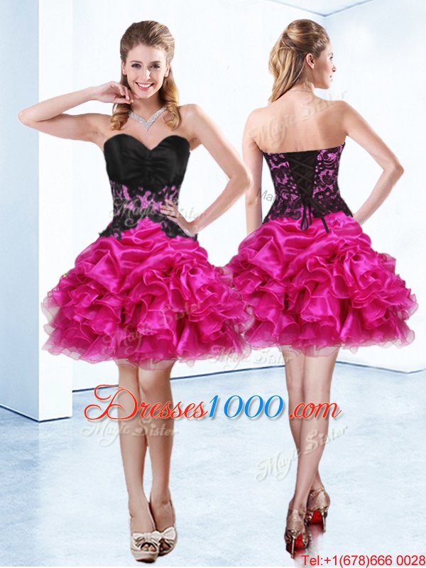 Spectacular Fuchsia Pageant Dress Prom and Party and For with Beading and Ruffles and Pick Ups Sweetheart Sleeveless Lace Up