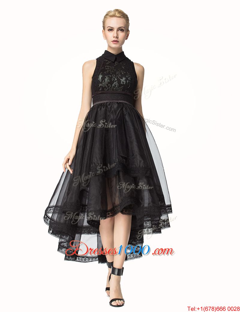 Romantic Black Sleeveless Asymmetrical Lace Zipper Pageant Dress Toddler