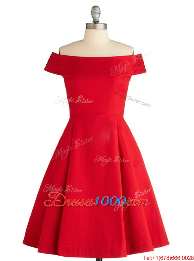 Red Off The Shoulder Neckline Ruching Womens Party Dresses Sleeveless Zipper