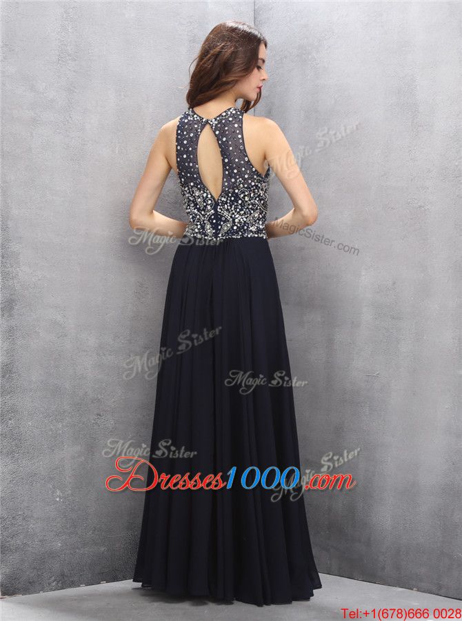 Fantastic Halter Top Black A-line Beading Formal Dresses Backless Chiffon Sleeveless Floor Length