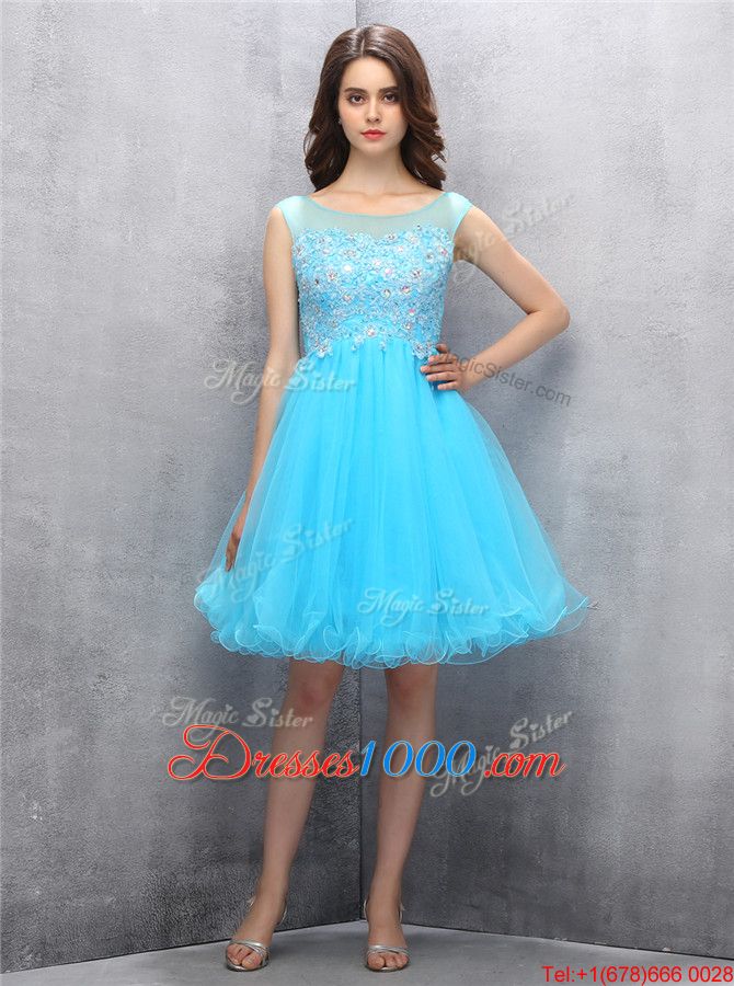 Traditional Scoop Blue Sleeveless Tulle Zipper Party Dress for Toddlers for Prom
