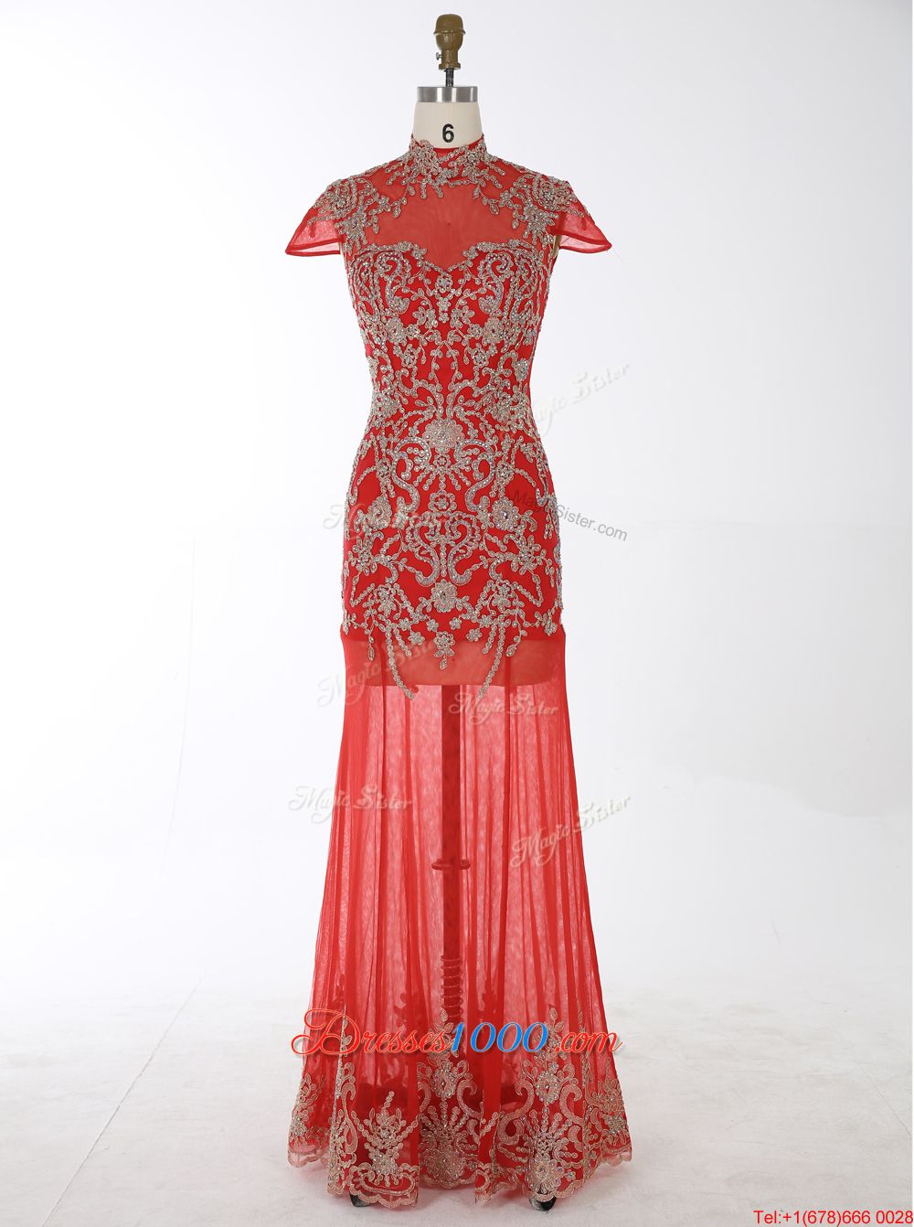 Mermaid Cap Sleeves Beading and Appliques Backless Juniors Evening Dress