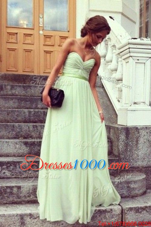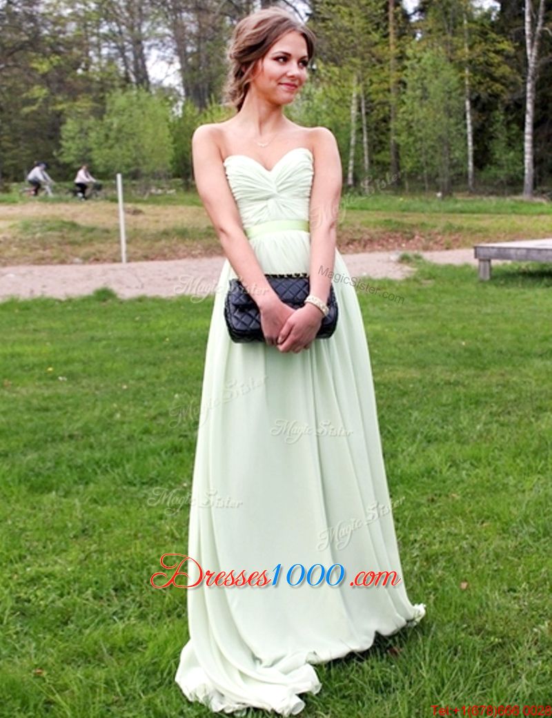 Cute Green Backless Sweetheart Ruching Evening Outfits Chiffon Sleeveless