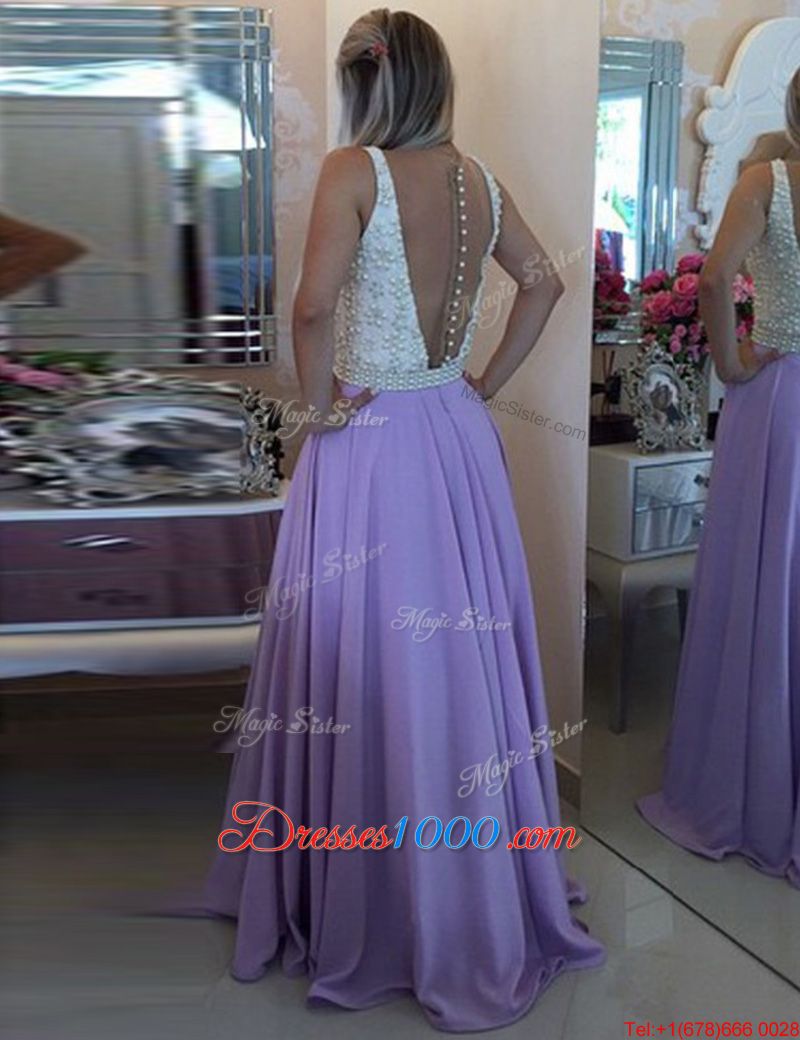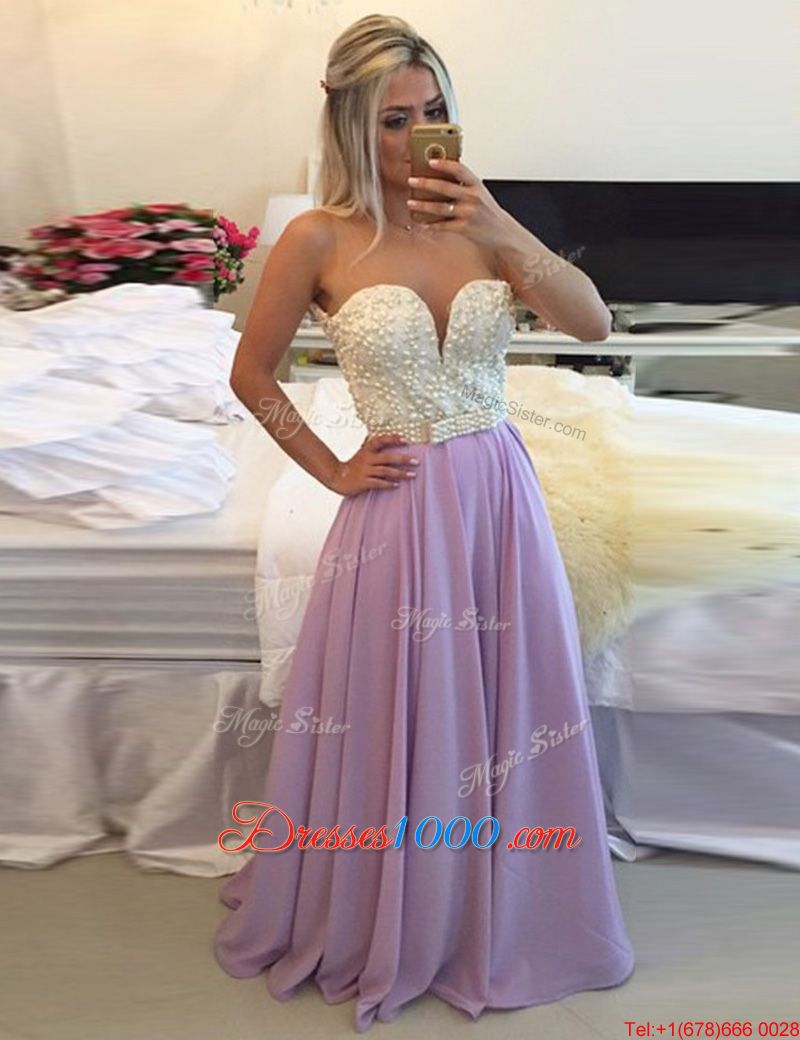 Elegant Scoop Lavender A-line Ruching Junior Homecoming Dress Clasp Handle Chiffon Sleeveless Floor Length