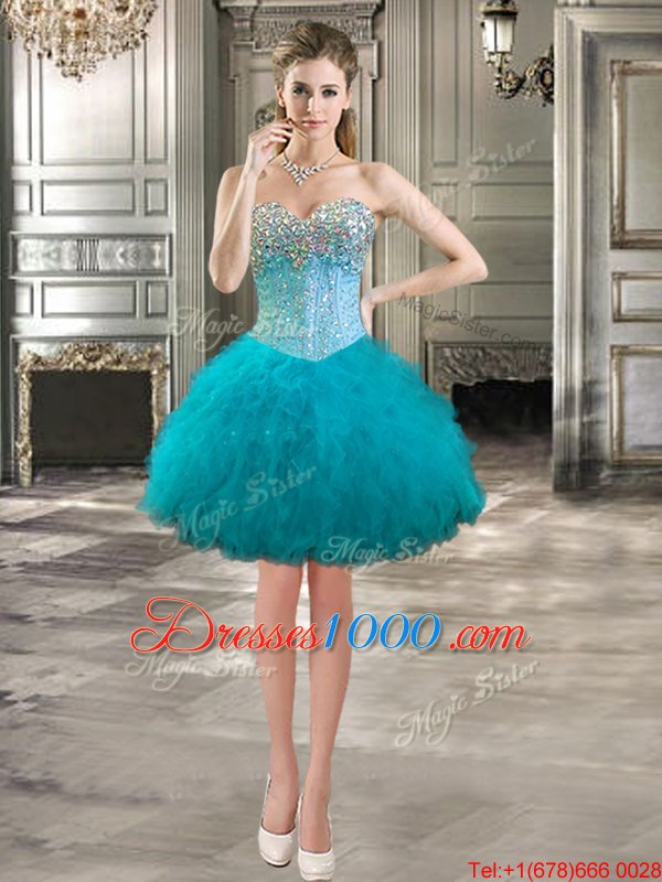Teal Sleeveless Beading and Ruffles Mini Length Pageant Dress for Teens