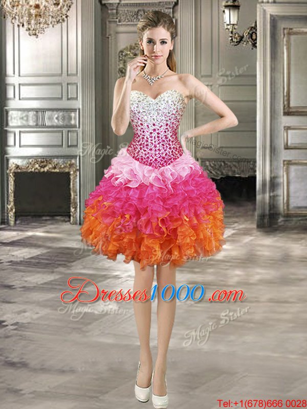 Pretty Multi-color Organza Lace Up Sweetheart Sleeveless Mini Length Pageant Dress for Girls Beading and Ruffles