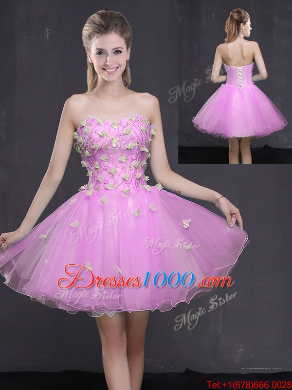 Mini Length Lilac Homecoming Dresses Organza Sleeveless Appliques