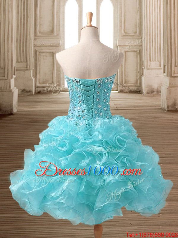 Aqua Blue Lace Up Party Dress for Girls Beading and Ruffles Sleeveless Mini Length