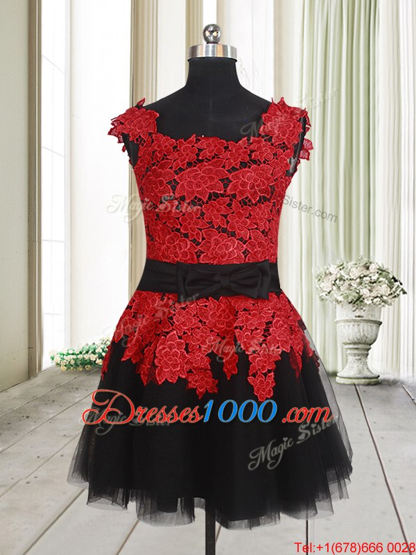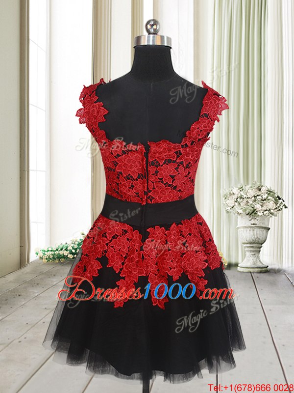 Square Sleeveless Tulle Mini Length Zipper Party Dresses in Red And Black for with Appliques