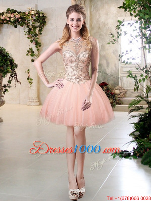 Ball Gowns Prom Dress Peach Scoop Tulle Sleeveless Mini Length Lace Up