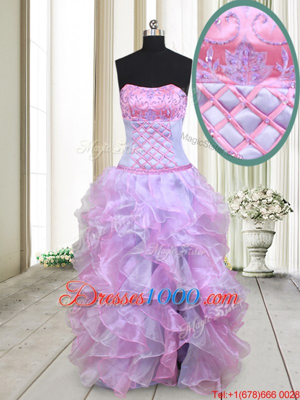 Colorful Multi-color Lace Up Strapless Beading and Ruffles Pageant Dress Wholesale Organza Sleeveless