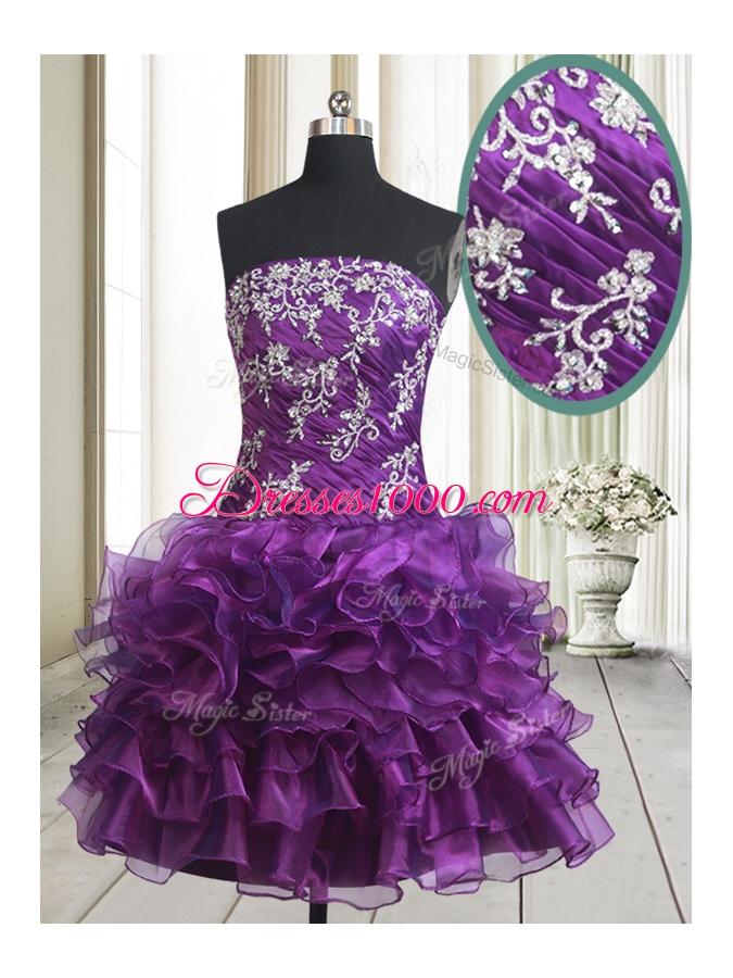 Modern Sleeveless Mini Length Beading and Ruffled Layers Lace Up High School Pageant Dress with Purple