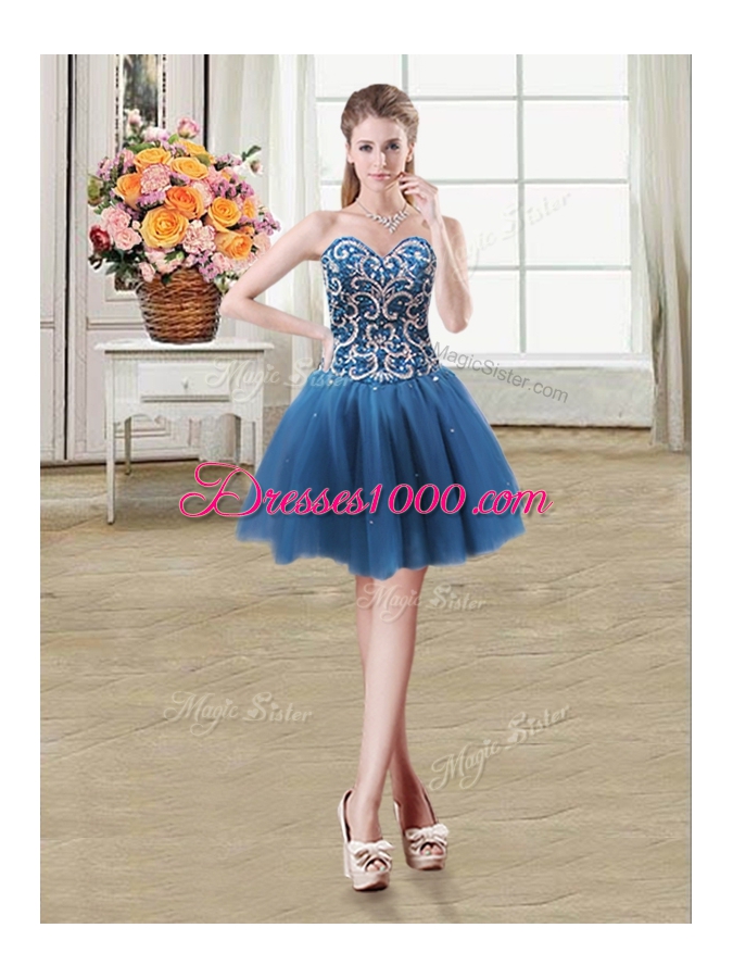Teal Sleeveless Beading and Sequins Mini Length Pageant Dress for Teens