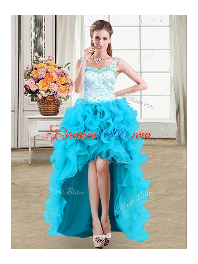 Decent Straps Straps Sleeveless Beading and Appliques and Ruffles Lace Up Pageant Dress for Girls
