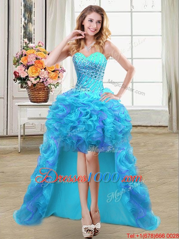 Aqua Blue Sweetheart Lace Up Beading and Ruffles Evening Gowns Sleeveless