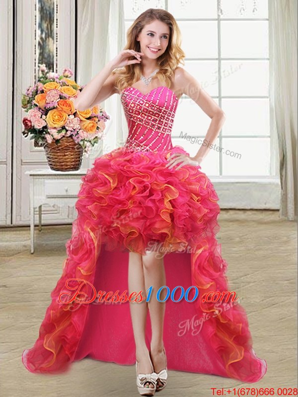 Glittering Ball Gowns Womens Party Dresses Multi-color Sweetheart Organza Sleeveless High Low Lace Up