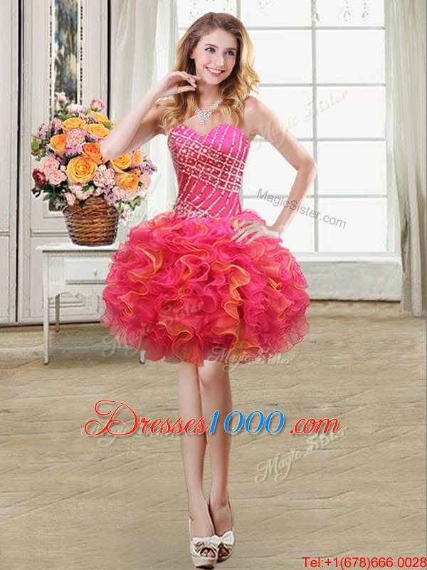 Multi-color Custom Made Pageant Dress Prom and Party and For with Beading and Ruffles Sweetheart Sleeveless Lace Up