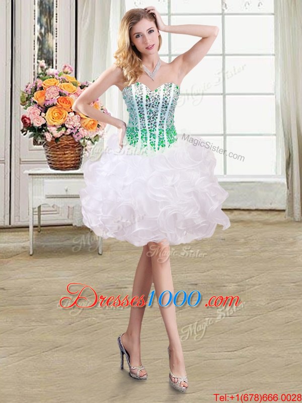 Ball Gowns Pageant Dress for Teens White Sweetheart Organza Sleeveless Mini Length Lace Up