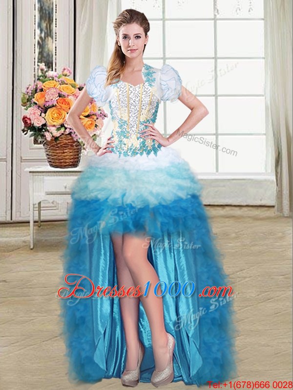 Multi-color Sleeveless Beading and Appliques and Ruffles High Low Pageant Dress for Teens