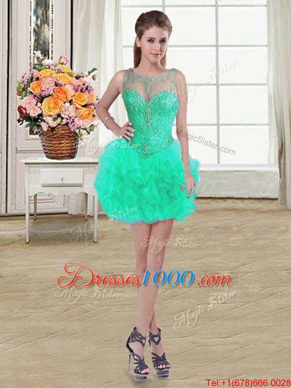 Tulle Scoop Sleeveless Lace Up Beading and Ruffles Pageant Dress for Girls in Turquoise