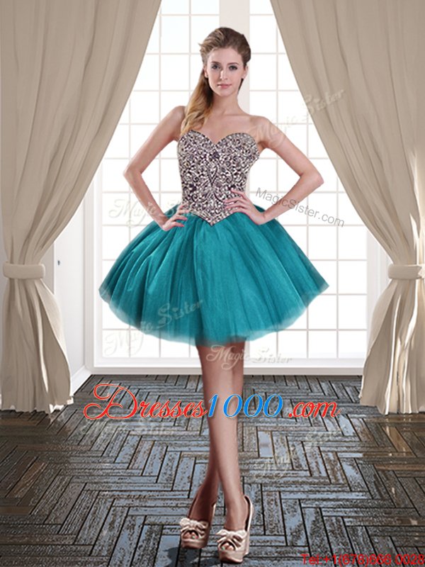 Sweetheart Sleeveless Lace Up Pageant Dress for Girls Teal Tulle