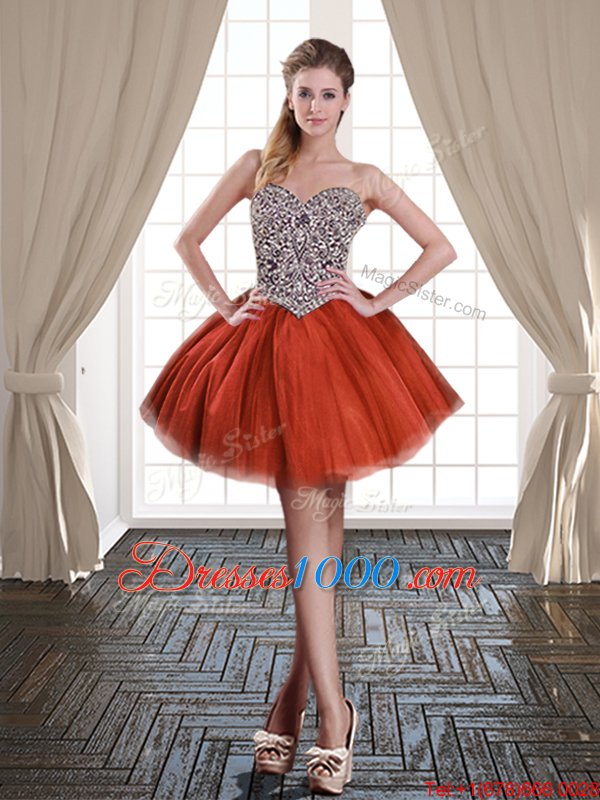 Rust Red Lace Up Glitz Pageant Dress Beading Sleeveless Mini Length