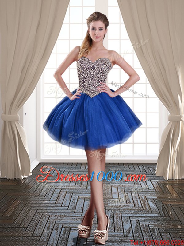 Sweetheart Sleeveless Lace Up Casual Dresses Royal Blue Tulle