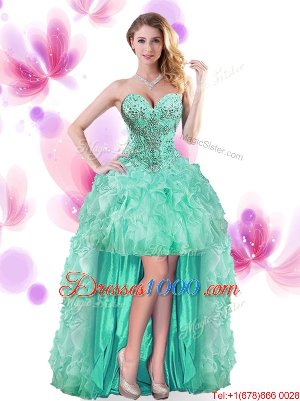 Turquoise Sleeveless Beading and Ruffles High Low Pageant Gowns