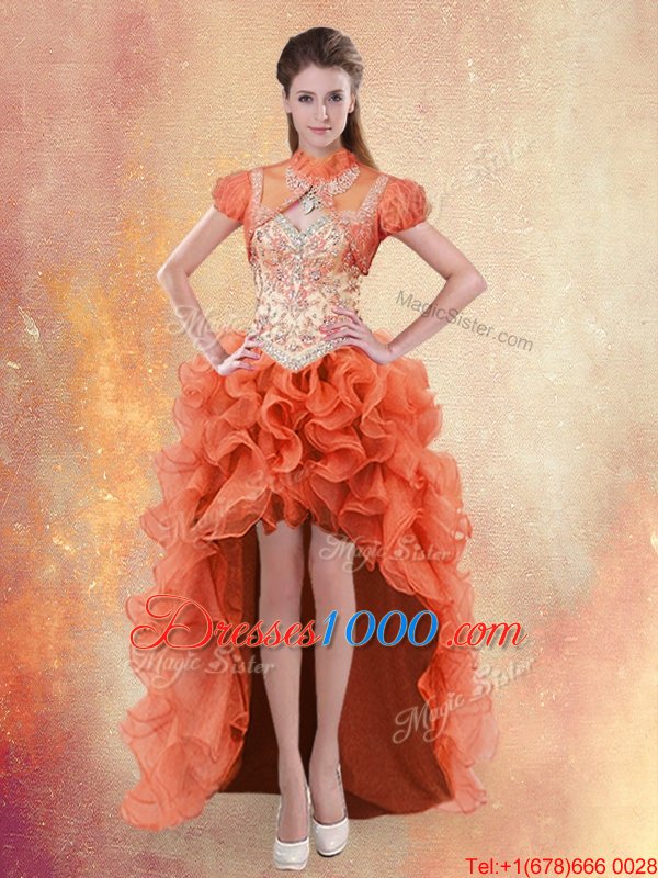 Straps Straps High Low Lace Up Pageant Dress for Girls Orange Red and In for Prom and Party with Beading and Ruffles