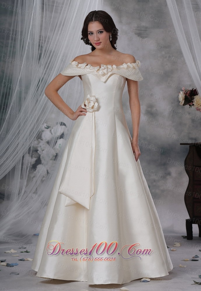 If you've spent any time perusing bridal magazines, you'll see that designers have been visiting older, more classic styles in their designs lately. It is a pretty scoop neckline with shimmering beading and flower accents. The mid-sections is adorned with a hand made flower gives you a romantic look. The full floor-length skirt creates a beautiful A-line shape to complete the dress. The dress sways beautifully across the floor when you move, as if you're floating on air. A bit retro and a lot gorgeous!