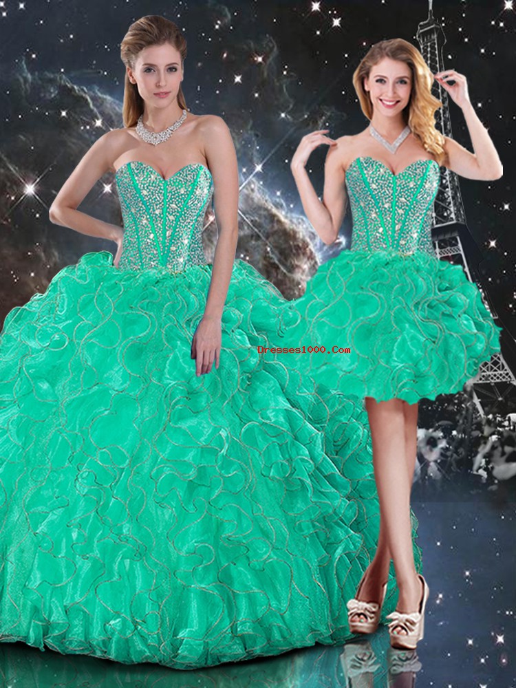 Edgy Sweetheart Sleeveless Lace Up Quinceanera Dresses Turquoise Organza