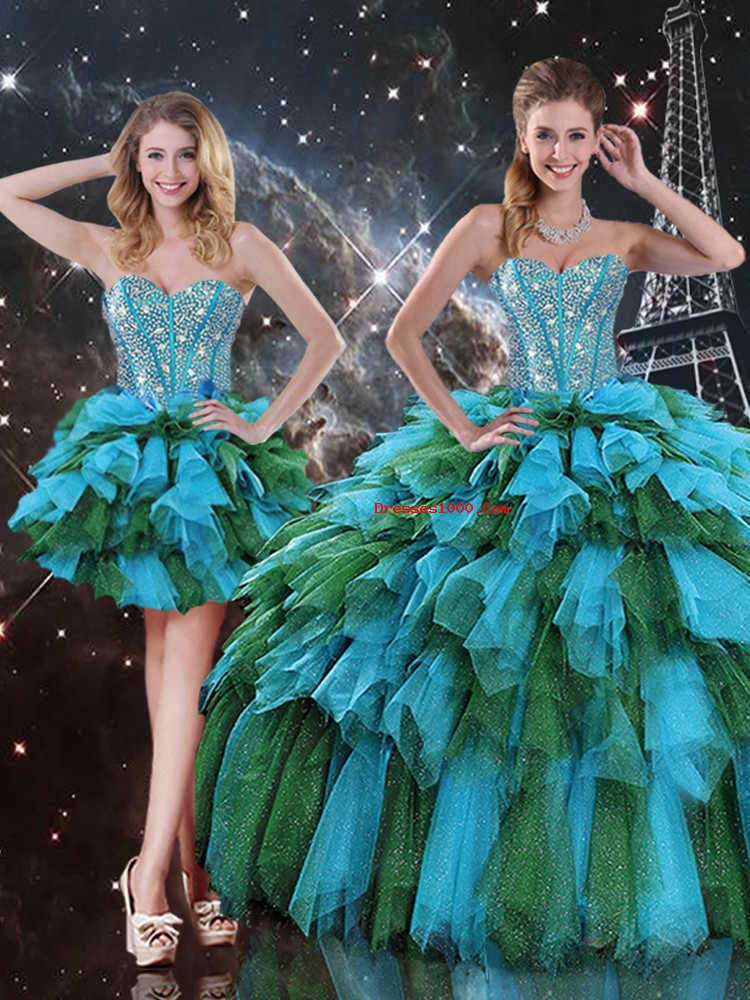 Chic Floor Length Multi-color 15th Birthday Dress Sweetheart Sleeveless Lace Up