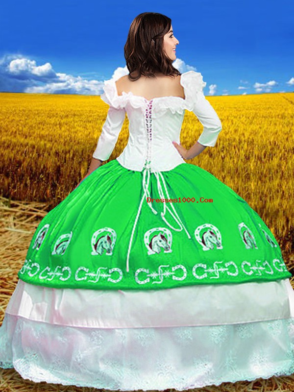 Traditional 3 4 Length Sleeve Lace Up Floor Length Embroidery Sweet 16 Quinceanera Dress