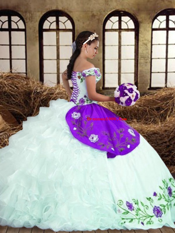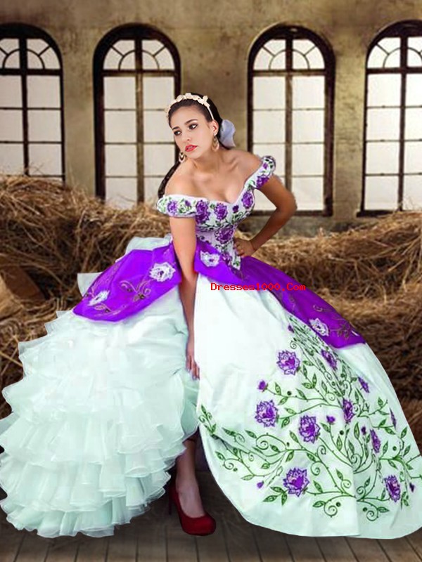 Charming Taffeta Sleeveless Floor Length Sweet 16 Quinceanera Dress and Embroidery and Ruffled Layers