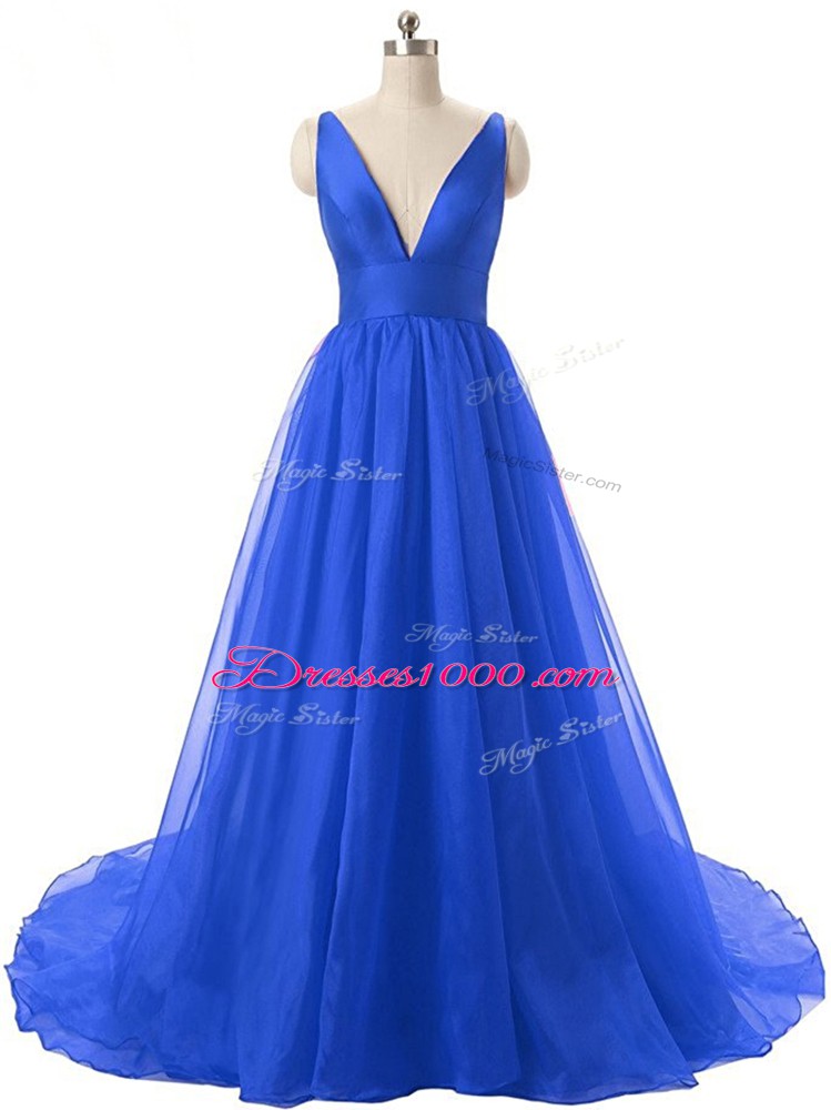 Ruching Winning Pageant Gowns Royal Blue Backless Sleeveless Brush Train