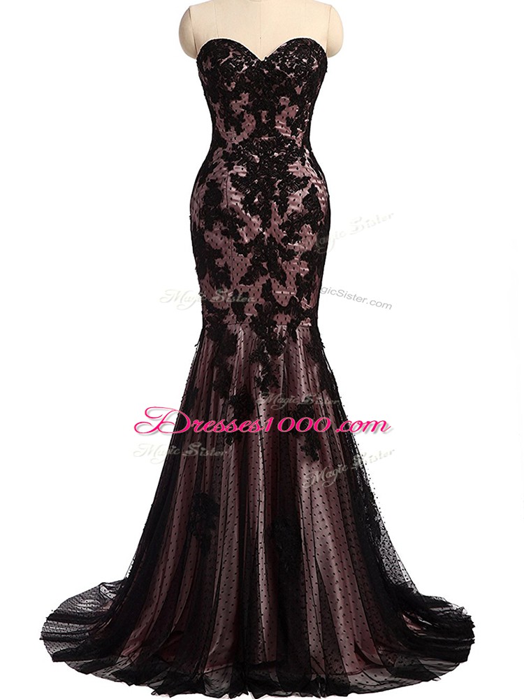 Elegant Black Evening Dress Prom and Military Ball and Sweet 16 with Lace and Appliques Sweetheart Sleeveless Brush Train Lace Up
