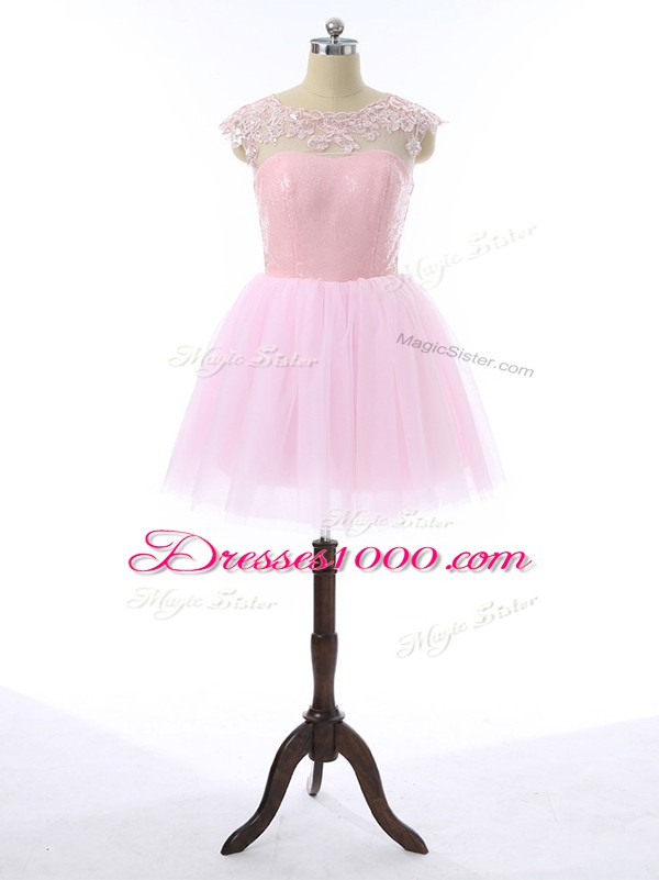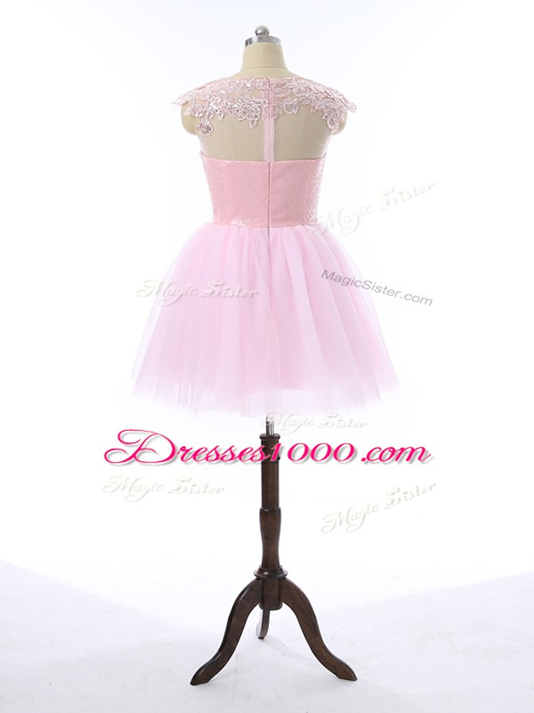 Sweet Baby Pink Zipper Party Dresses Lace and Appliques Sleeveless Mini Length