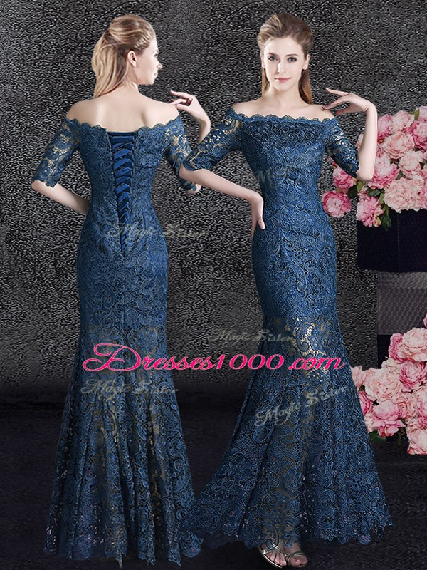 Mermaid Navy Blue Off The Shoulder Neckline Lace Mother of the Bride Dress Half Sleeves Lace Up