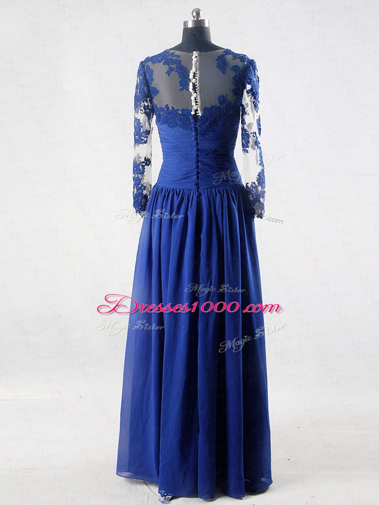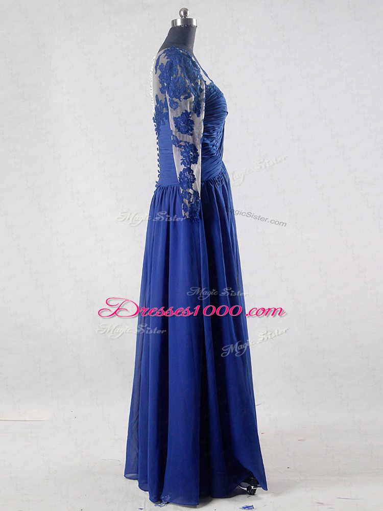 Flirting Blue Long Sleeves Floor Length Lace and Appliques Zipper Mother of Groom Dress