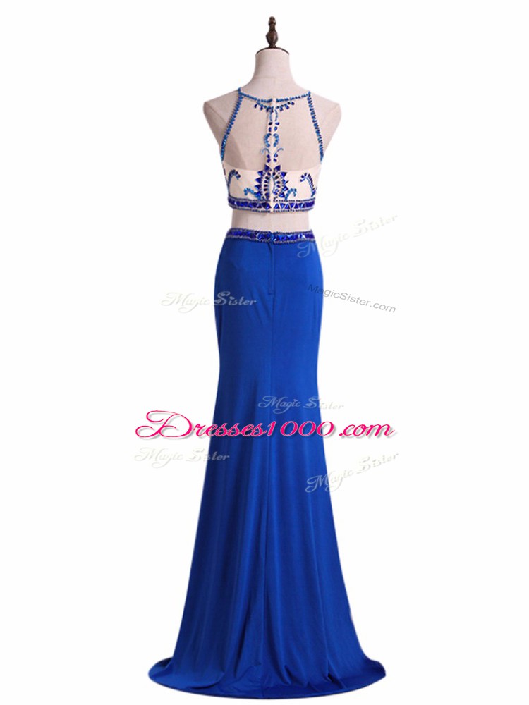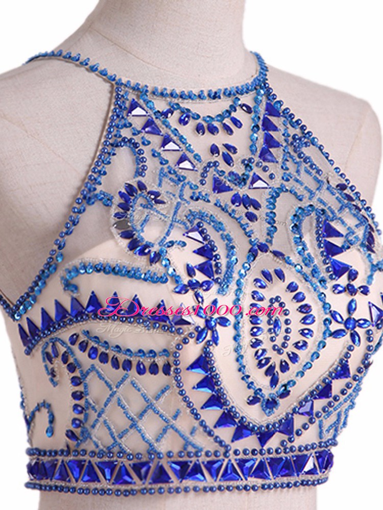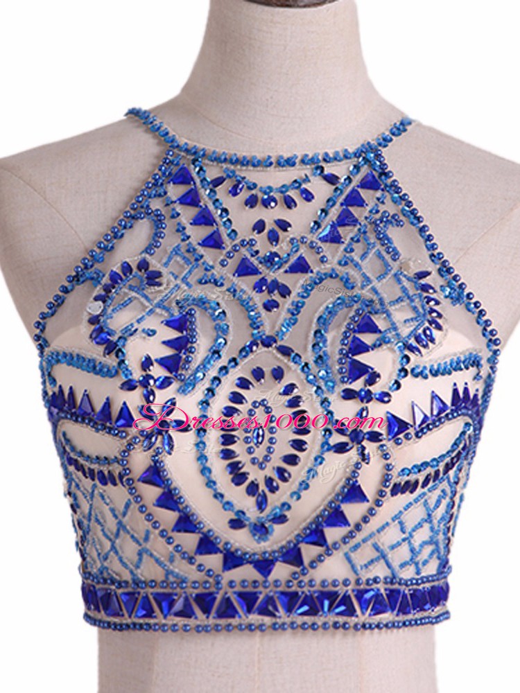 Delicate Sleeveless Chiffon Floor Length Zipper Pageant Dresses in Royal Blue with Beading